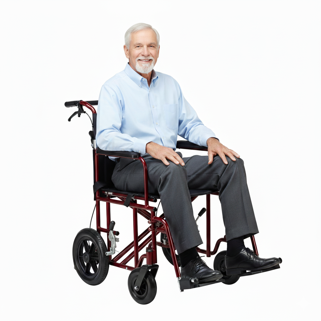This heavy-duty transport wheelchair is designed for strength, safety, and comfort while remaining lightweight at just 33 lbs. Built with a reinforced nylon seat and padded armrests, it provides long-lasting support for individuals up to 450 lbs. The chair features large 12" flat-free rear wheels for smooth mobility, a padded push bar for easy companion control, and folding backrest for compact storage. For added safety, it includes a seat belt, swing-away footrests, anti-tippers, and both hand wheel lock levers and companion-activated wheel locks. Durable yet portable, this chair is ideal for travel, clinical use, and everyday mobility needs.