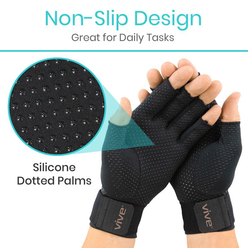 These are copper-infused compression gloves with adjustable wrist straps, designed to provide support and relief for people experiencing arthritis, carpal tunnel, or joint pain. The copper helps reduce inflammation and improve circulation, while the lightweight, breathable fabric keeps hands cool and comfortable during all-day wear. A non-slip silicone lining ensures the gloves stay securely in place, and the adjustable wrist strap allows you to customize compression for better stability and healing support.