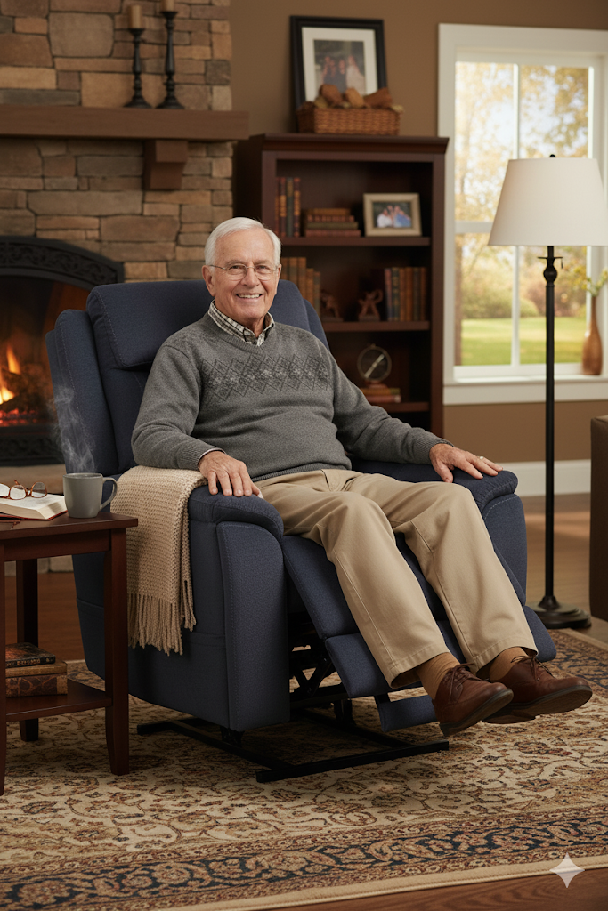 Durable and stylish, it comes in Sophie fabrics and Lexis vinyl, with a backup battery for power outages. A lifetime warranty on the frame and lift mechanism ensures long-lasting comfort and independence.
