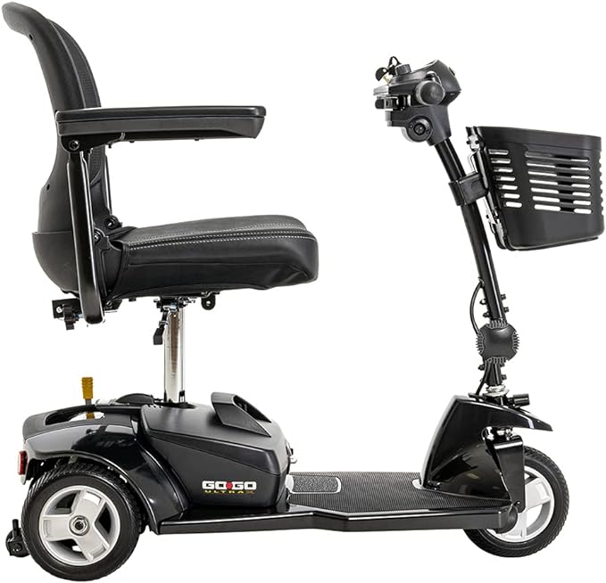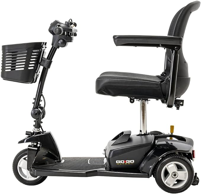 The Go Go® Ultra X 3-Wheel Mobility Scooter delivers first-class features at an affordable price, combining portability, comfort, and performance in a sleek design. With Pride’s feather-touch disassembly, it breaks down into five lightweight pieces—the heaviest just 29.5 lbs.—making transport and storage effortless. Powered by a 24-volt DC motor, it reaches speeds up to 4.3 mph and offers a range of up to 8 miles per charge, while the new mesh-back, foldable seat ensures breathable comfort. Convenient features like a tiller-mounted charging port, standard front basket, and non-scuffing tires make it a reliable choice for everyday use, giving you independence and value in one compact scooter.