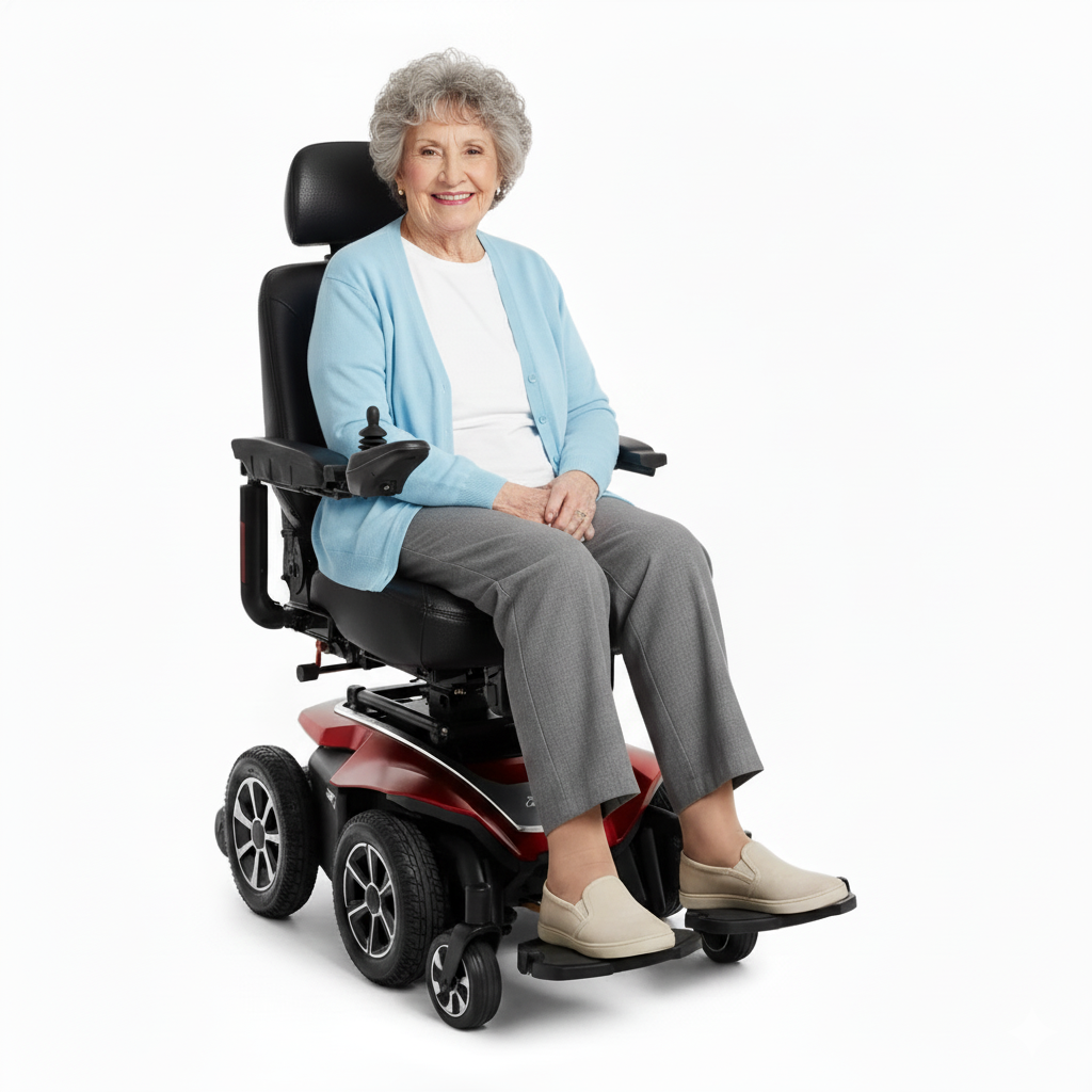 The Jazzy Air 2 power chair by Pride Mobility is an improved version of the groundbreaking Jazzy Air. This version features a power elevating seat that raises 12 inches in just 11 seconds! (that's 2 additional inches vs Jazzy Air 1). The most unique aspect of the power elevating seat is that it can raise or lower while the unit is in motion. Getting to your desired elevation is convenient and allows you participate in life as it’s happening. Imagine that you’re headed to a high-top table. With a normal power elevating seat, you have to wait to get to the table before you can raise the seat. With the ability to raise and lower the seat while you’re in motion, the Jazzy Air 2 allows you to participate in the present. When the seat is fully elevated, you can enjoy conversations with your friends and loved ones face-to-face.