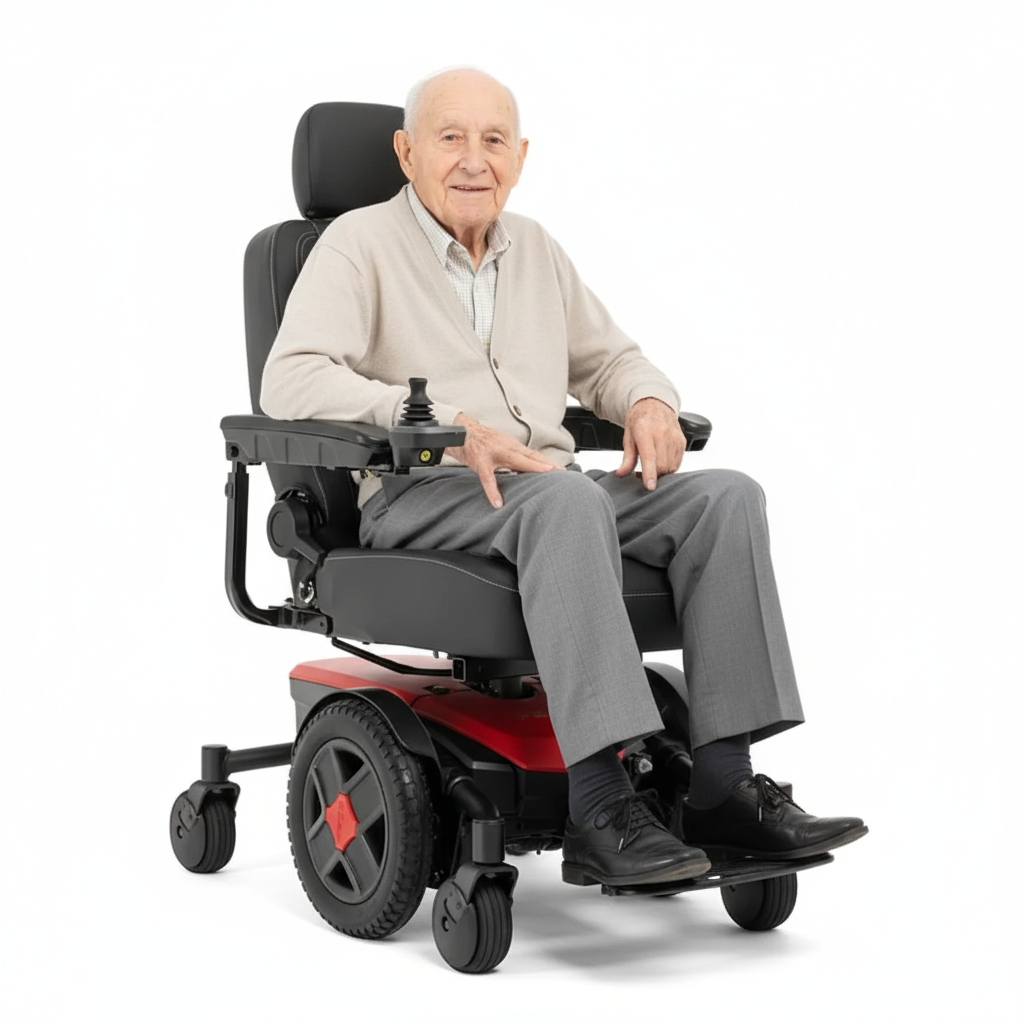 The new Jazzy EVO 613 is available with either the standard SLA U-1 batteries or upgraded Lithium ion batteries. Both options delivery plenty of power, speed, and charge range. The Lithium ion version will give you a faster charging time, sustained power performance, lighter weight, and a longer life. The look of the EVO is sleek and modern. 6 color options are available in a muted matte finish. Comfort and convenience come through in the EVO’s memory foam high-back seat which allows you to adjust your seat depth and go into a semi-recline. Good posture and proper positioning are achieved with the EVO’s height, width, and angle adjustable armrests. The highlight of the seat is its single post which allows the seat to swivel.