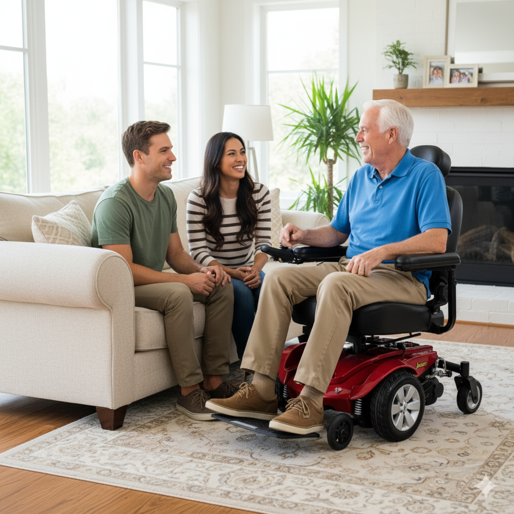 Pride's Jazzy Select's In-line technology provides stability and a tight turning radius. The high-back seat with a headrest and larger footplate will keep you riding comfortably. The easy to maintain design and added Active-Trac Suspension makes this power chair more resistant to uneven surfaces and bumps than other power wheelchairs. The charging port is easily accessible on the controller.