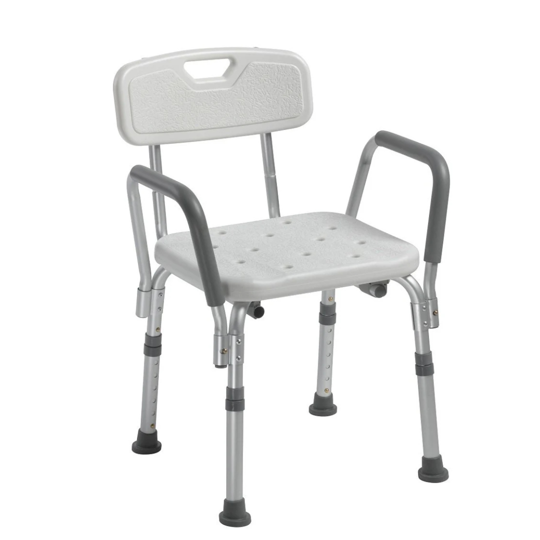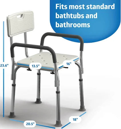 Experience safety, comfort, and convenience with this adjustable bath bench. Designed with user comfort in mind, it features removable padded armrests that offer both support and added security. The blow-molded bench and backrest ensure strength without compromising on comfort, while built-in drainage holes help reduce the risk of slipping. Its lightweight yet sturdy aluminum frame is durable and corrosion-resistant, making it ideal for long-term use in wet environments. The height-adjustable legs allow for a customized fit in 1-inch increments, ensuring optimal usability for various needs. Crafted using recycled materials, this bench is a smart, eco-conscious choice for everyday safety and support.