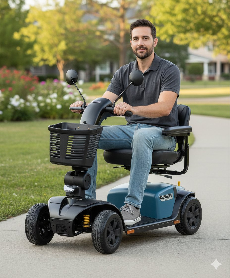 The Platinum Scooter is a high-performance mobility aid designed for individuals who need reliable, comfortable, and safe transportation support in their daily lives. It combines the easy maneuverability of a 3-wheel scooter with the stability of a 4-wheel design, making it ideal for both indoor and outdoor use. With features like EZ Turn technology for smooth navigation, Charge360 magnetic charging for effortless power connection, full suspension for a comfortable ride, and feather-touch disassembly for simple transport, this scooter provides the perfect balance of convenience, durability, and independence for users seeking a dependable mobility solution.