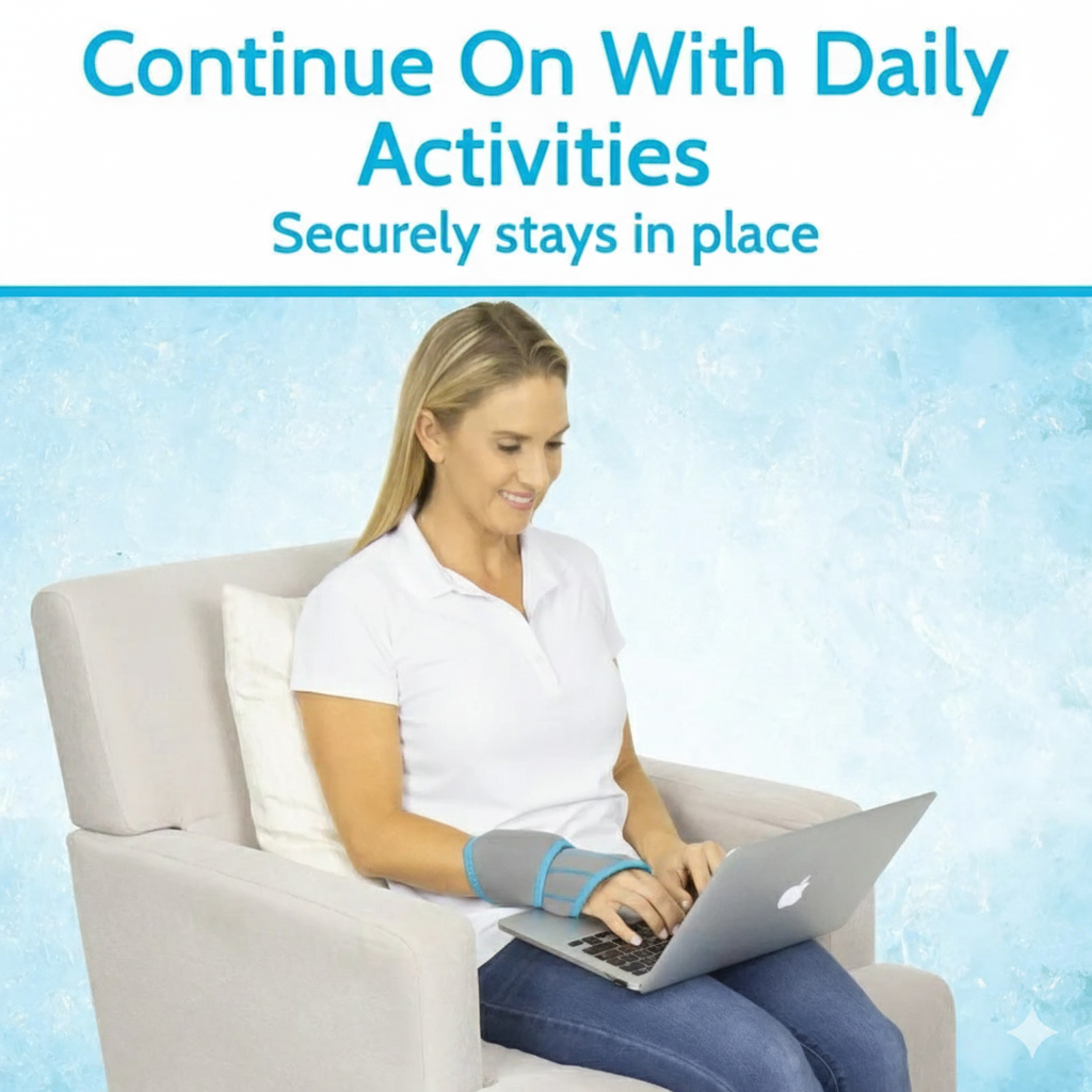 The Wrist Ice Wrap provides targeted relief for wrist pain, swelling, and stiffness from arthritis, carpal tunnel, sprains, strains, or repetitive motion injuries. Featuring a removable gel pack for cold or heat therapy and adjustable compression, it fully covers the wrist while leaving fingers free for daily tasks. Made from soft, latex-free neoprene with a secure fastener and a comfortable thumb opening, the wrap fits wrists up to 9” in circumference and can be worn on either hand. Lightweight, flexible, and reusable, it’s ideal for use at home, work, or during activities requiring wrist support.